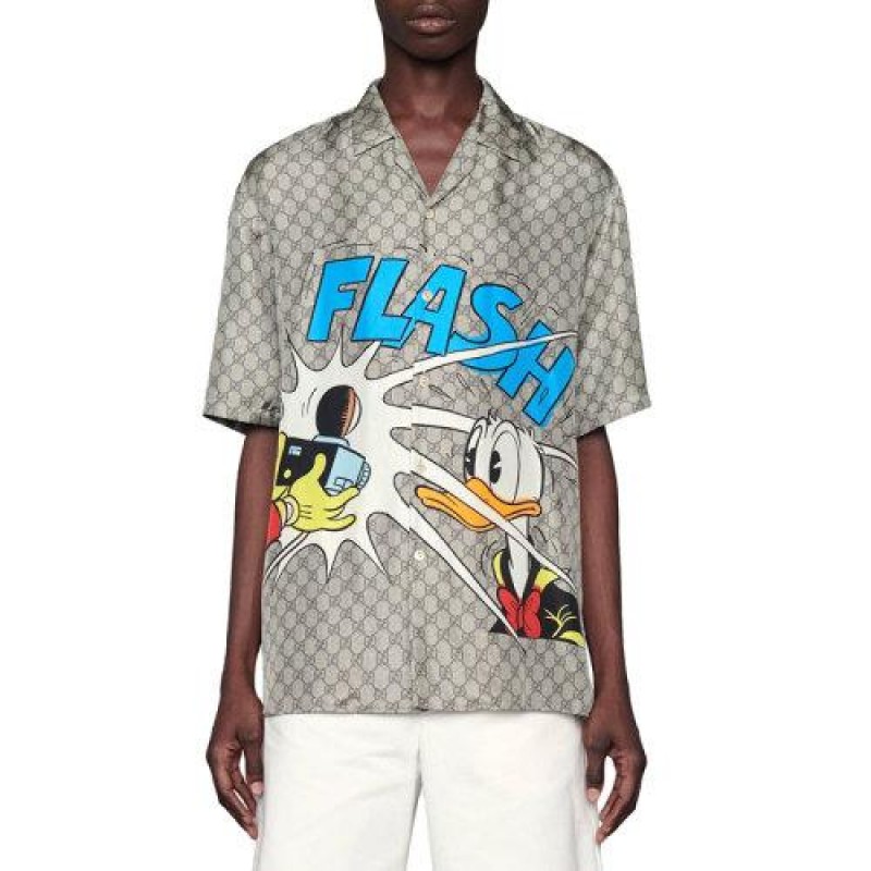 GUCCI 古驰 男士 服装 21春夏 米色翻领格纹唐老鸭图案短袖衬衫 男士短袖衬衫 $1321.1 |