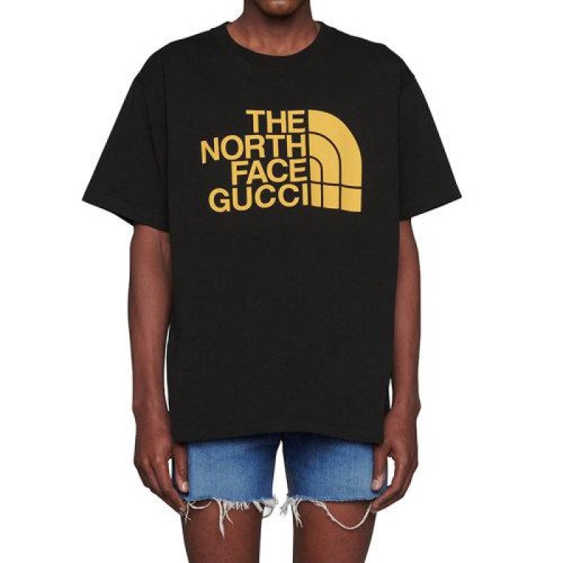 【包税】预订款1-2周 GUCCI/古驰 21年春夏新款 North Face x Gucci系列 男女通用黑色磨砂纯棉平纹针织T恤616036XJDCL1131