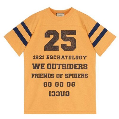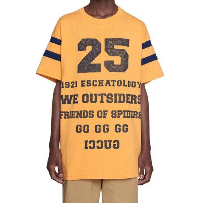 【包税】预订款1-2周 GUCCI/古驰 21年春夏新款 男士黄色棉质印有“ 25 Gucci”字样T恤655459XJDHI7477