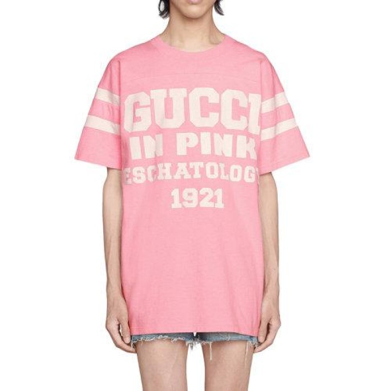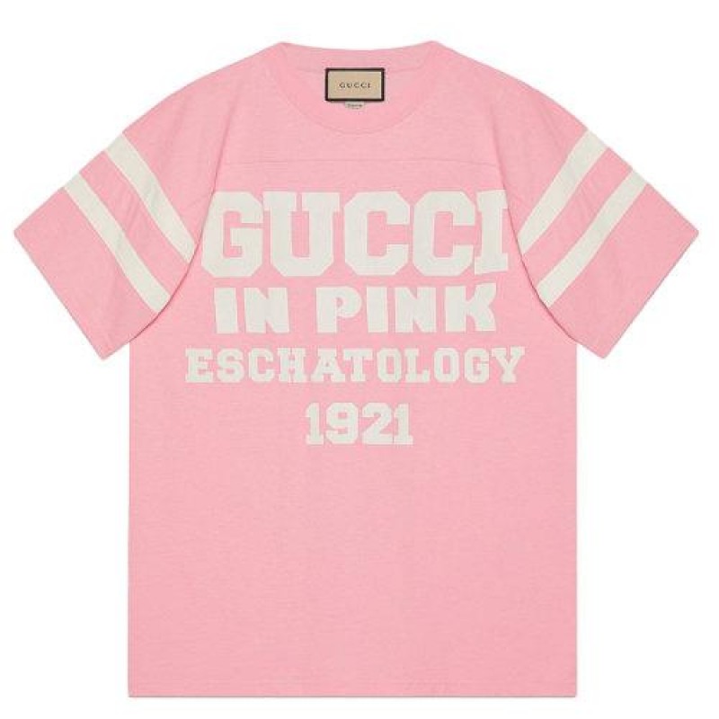 【包税】GUCCI/古驰 21年春夏新款 男士浅粉色棉质印有“ 25 Gucci”字样T恤655459XJDLY5904