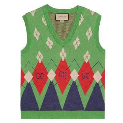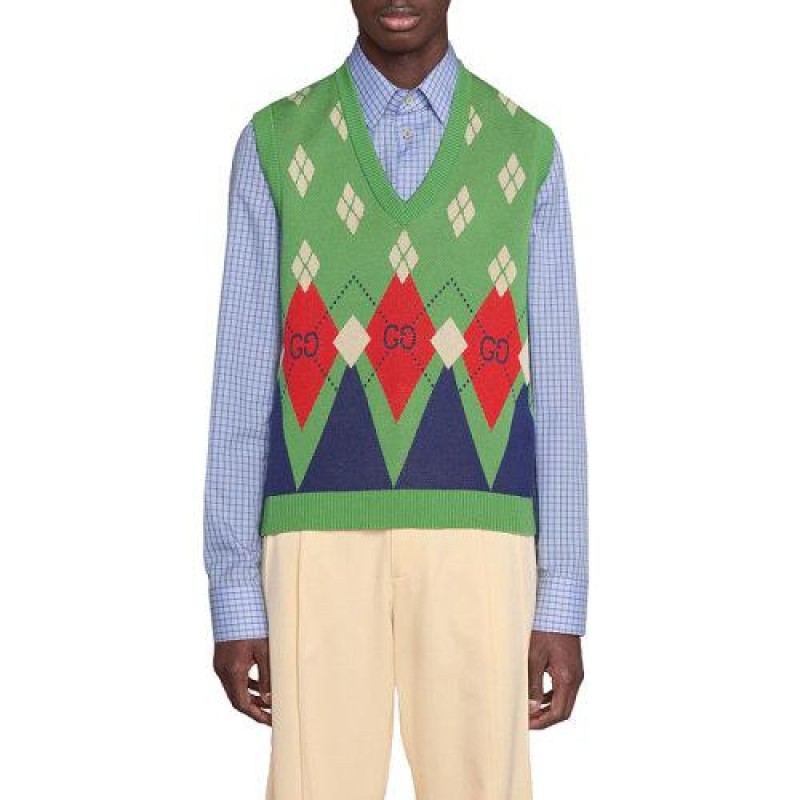 【包税】GUCCI/古驰 21年早秋新款 男士彩色棉质罗纹饰面Argyle GG羊毛针织开衫653841XKBUQ3465
