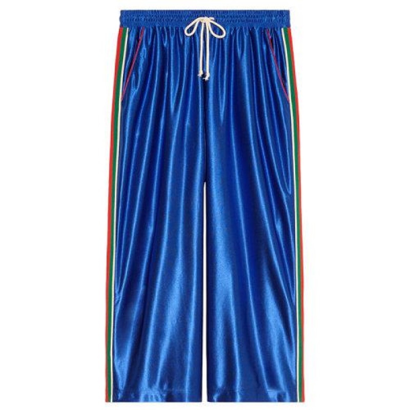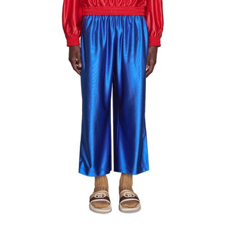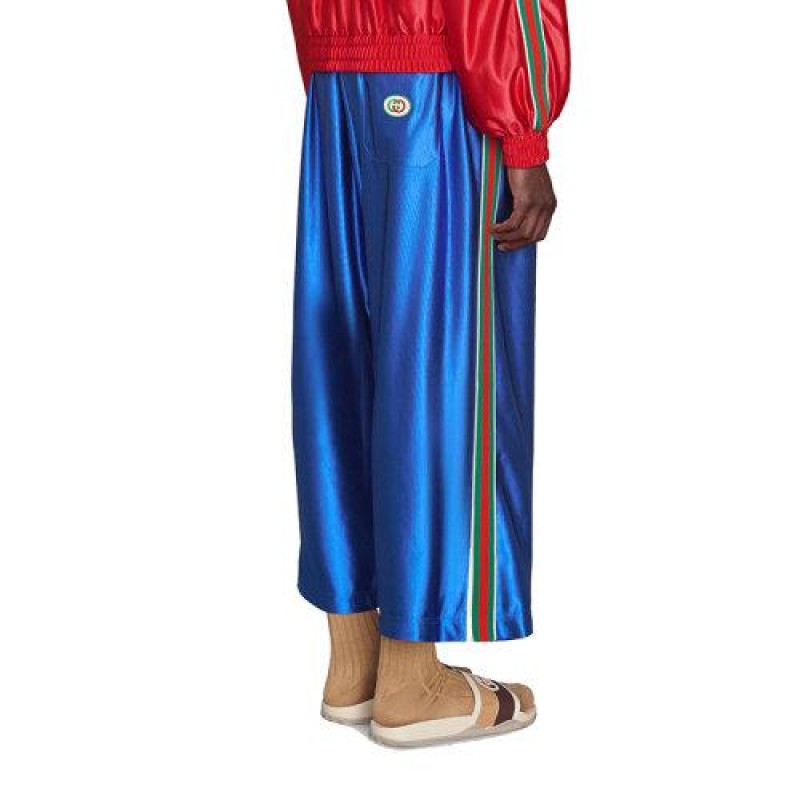 【包税】GUCCI/古驰 21年早秋新款 Opening系列 男士蓝色闪亮科技涤纶平纹针织休闲裤654750XJDI94364