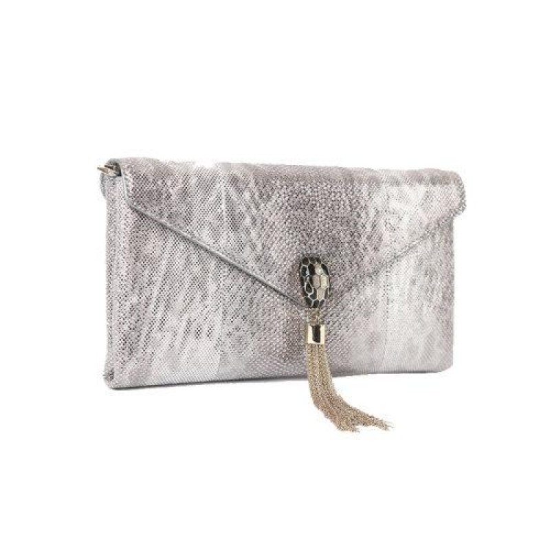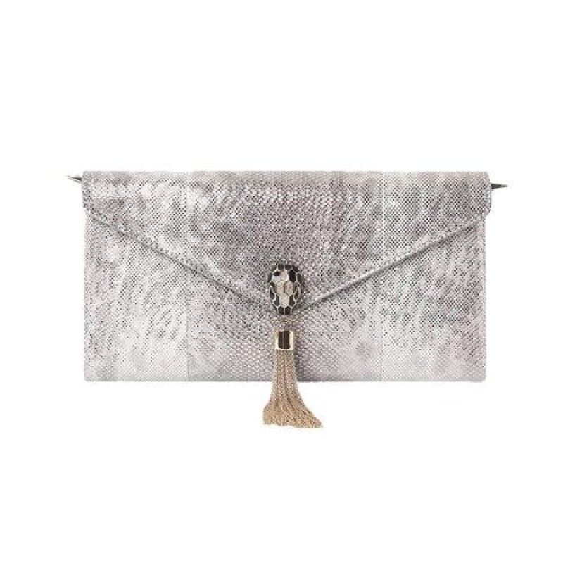 【包邮包税】 BVLGARI/宝格丽 宝格丽 BVLGARI 21春夏 女士深银灰色BVLGARI COCKTAIL 系列蛇头搭扣流苏手拿包