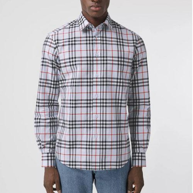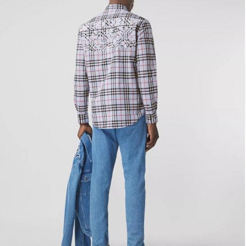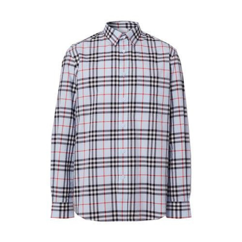 【包邮包税】BURBERRY/博柏利 巴宝莉男装 Vintage 男士浅蓝色棉质时尚格纹方领长袖衬衫 80385221