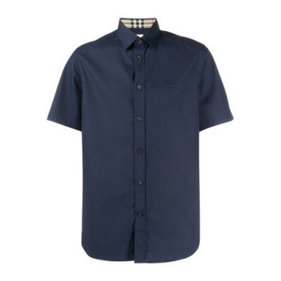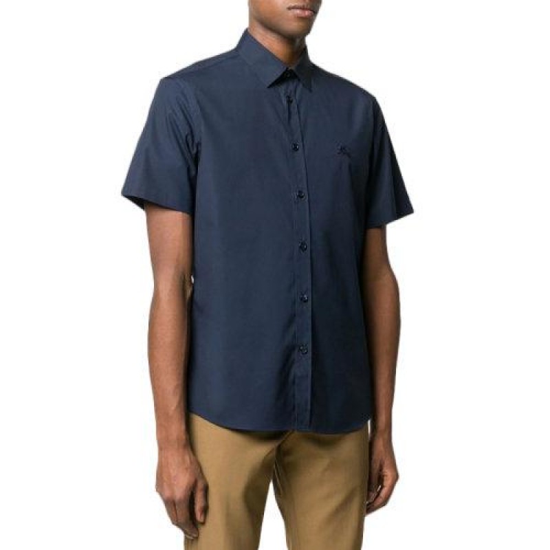 BURBERRY 博柏利 巴宝莉 男士 服装 21春夏 深蓝色翻领系扣短袖衬衫 男士短袖衬衫 $559.6 |