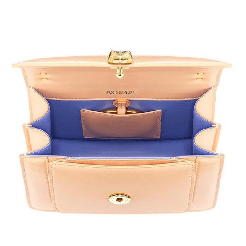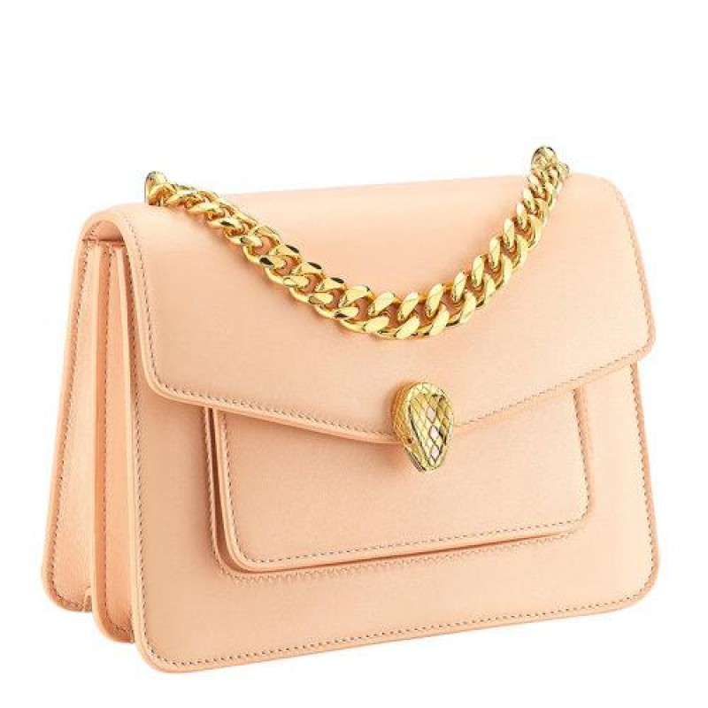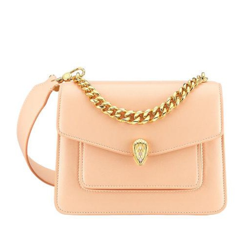 【包税】BVLGARI/宝格丽 2021春夏新款SERPENTI FOREVER系列 女士小号桃红色纳帕皮革金色黄铜珍珠贝母扣单肩斜挎包290765