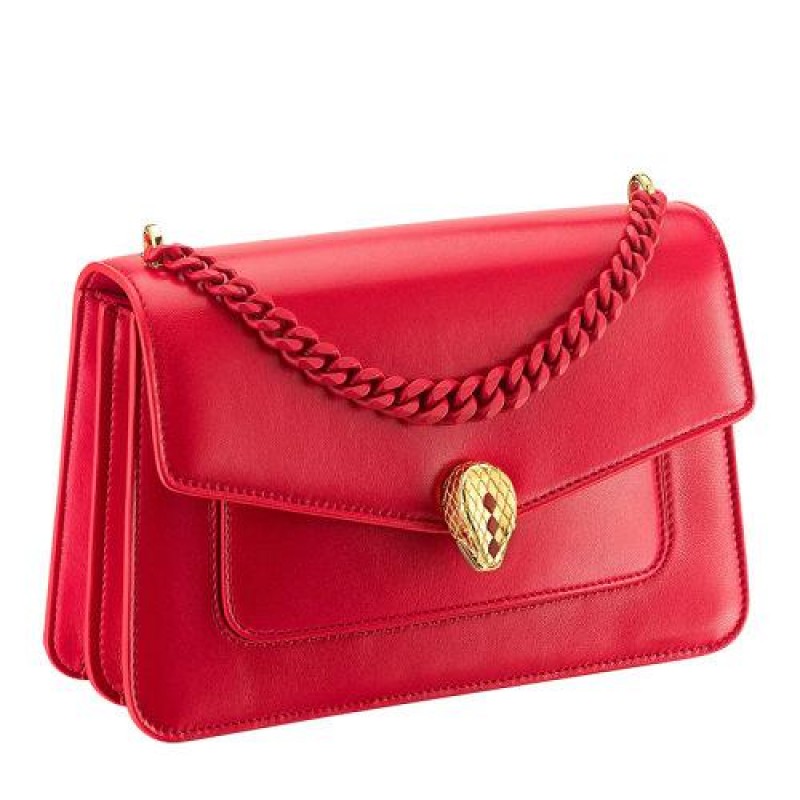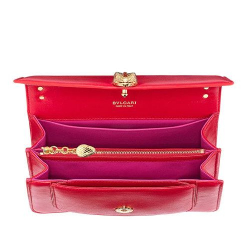 【包税】BVLGARI/宝格丽 2021春夏新款SERPENTI FOREVER系列 女士中号红色纳帕皮革金色黄铜红玉髓玛瑙扣单肩斜挎包290766