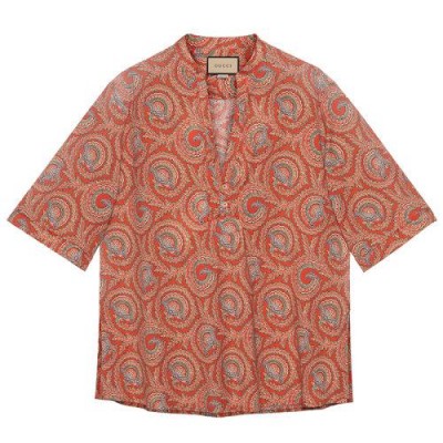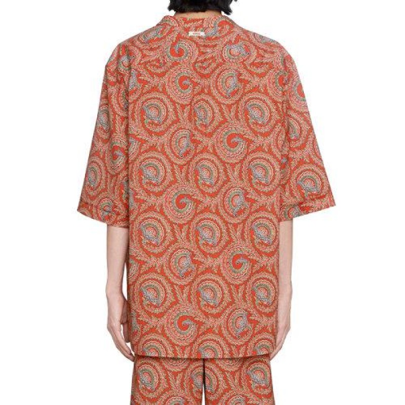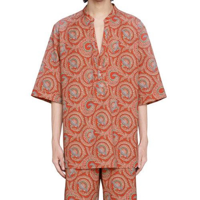 【包税】GUCCI/古驰 21年春夏新款 男士橙色黄色和蓝色棉质佩斯利迷印花V领上衣654888ZAGXJ7220