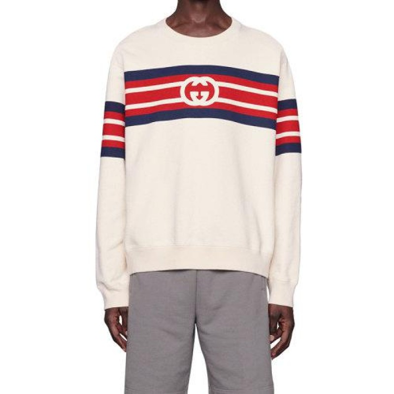 【包税】GUCCI/古驰 21年早秋新款 男士白色棉质GG印花运动衫626990XJDAH9150