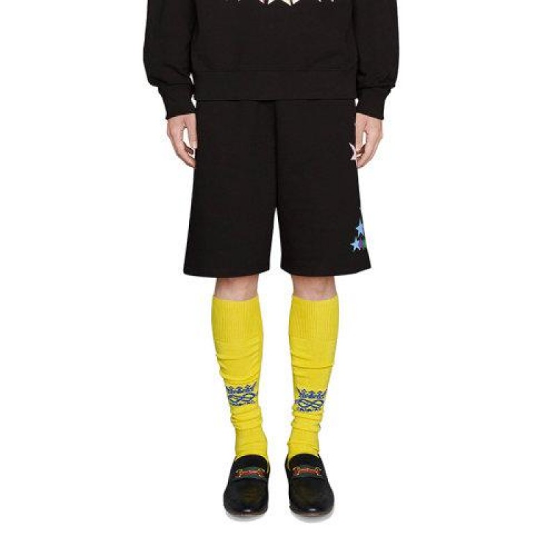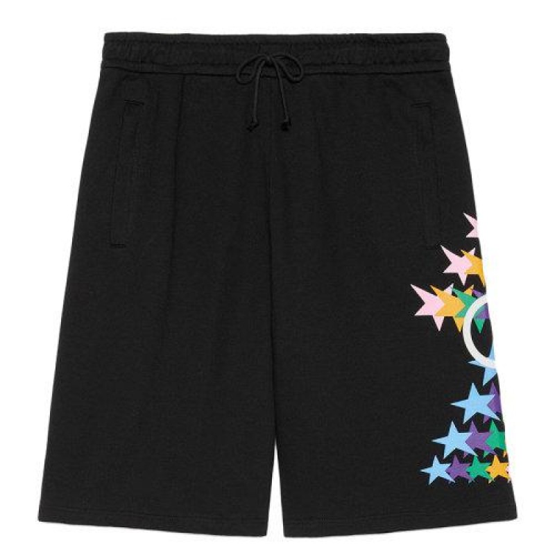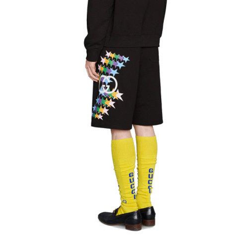 【包税】预订款1-2周 GUCCI/古驰 21年早秋新款 Opening系列 男士黑色发光的GG星星印花棉质短裤663249XJDNK1082