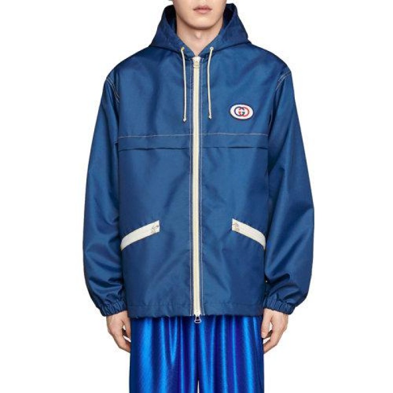 【包税】GUCCI/古驰 21年早秋新款 男士浅蓝色帆布和尼龙夹克654834ZAGVW4211