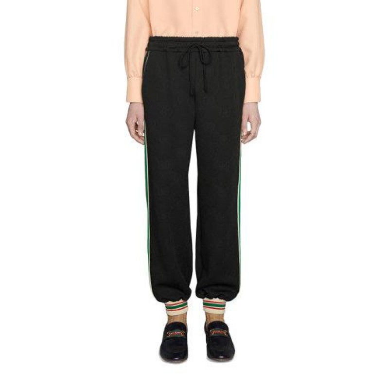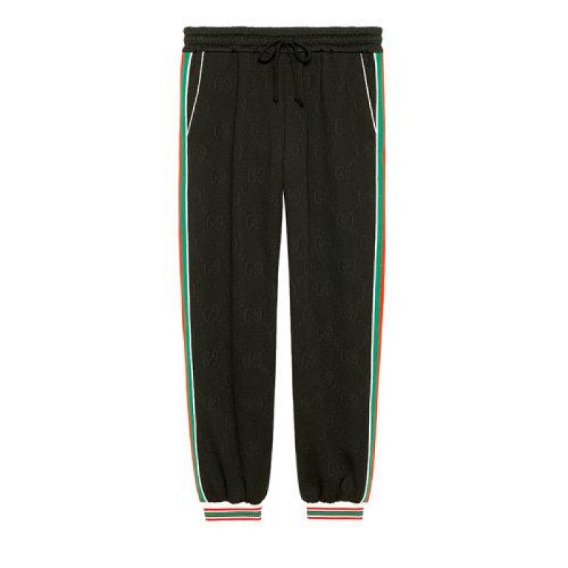 【包税】GUCCI/古驰 21年早秋新款 男士黑色GG提花平纹针织运动裤663569XJDE91043