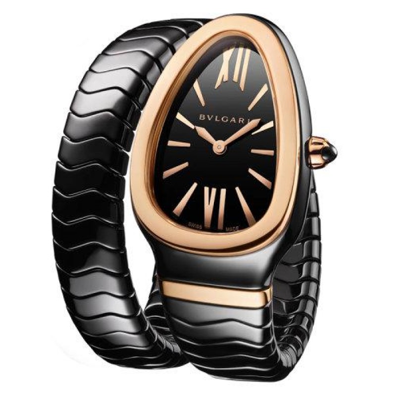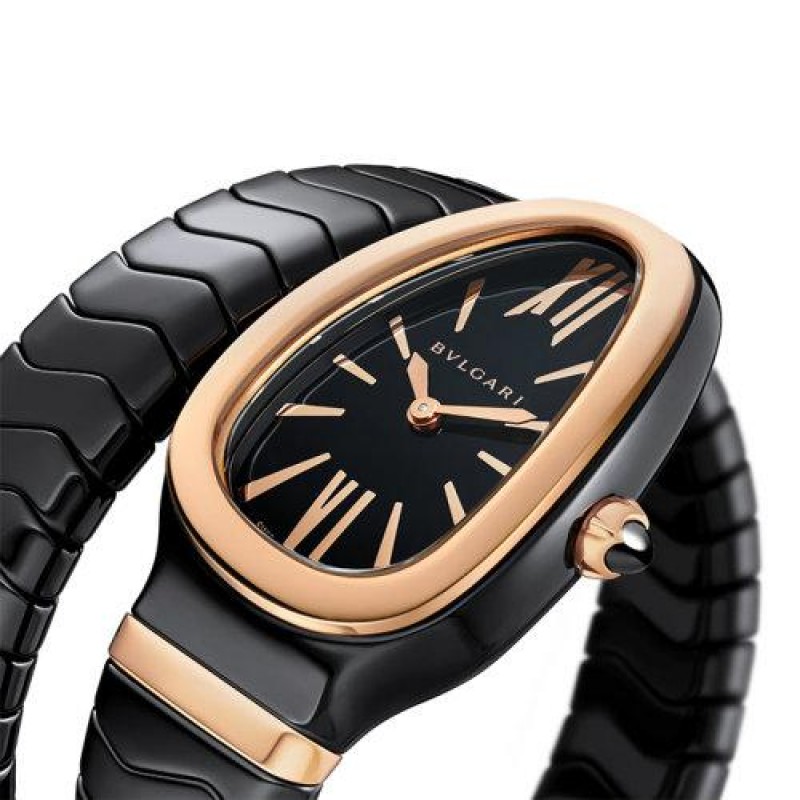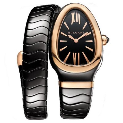 【 Tax included 】 Book 2-3 weeks BVLGARI/Bulgari black ceramic case and single helix strap 18K gold rose gold bezel with black baked paint dial SERPENTI SPIGA quartz watch 35mm 102735