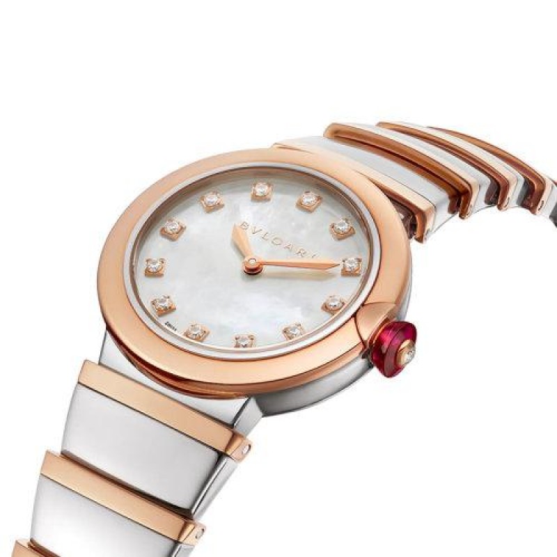 【 Tax included 】 Book 2-3 weeks BVLGARI/Bulgari 18K gold rose gold and stainless steel case and bracelet with white mother of pearl dial and diamond studded hour markers LVCEA quartz watch 28mm 102194