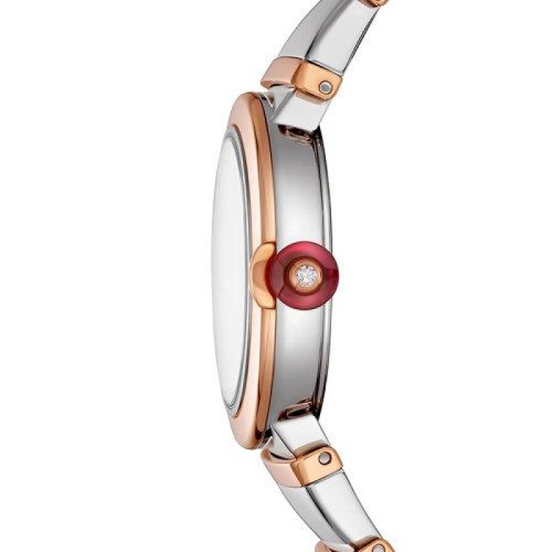 受光与时间之间不可分割的联系的启发,LVCEA向日d致敬,日sun是植根于古罗马传统的古老的时间测量工具之一。LVCEA在意大利以“ luce”作为光的力量的体现,以其结合传统与现代的圆形表壳的光彩夺目。每一枚时计的表冠均镶有彩色宝石,是罗马珠宝商的特色标志。LVCEA石英机芯腕表,28毫米精钢表壳和18 K金玫瑰金,18 K金玫瑰金表冠,镶有凸圆形切割合成红宝石和钻石,白色珍珠母贝表盘,镶有钻石的时标,不锈钢和18K金玫瑰金手链。