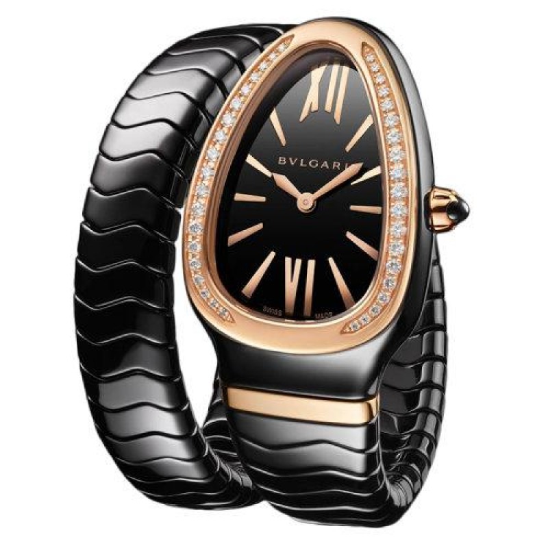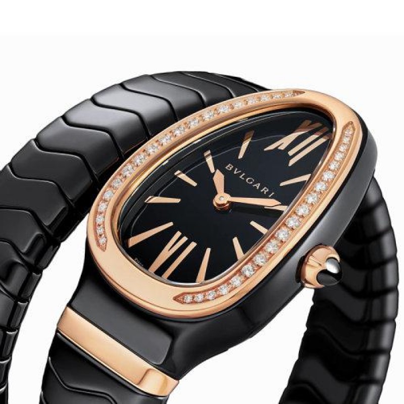 【包税】预定2-3周 BVLGARI/宝格丽 黑色陶瓷表壳 18K金玫瑰金表圈镶有明亮式切割钻石和黑色陶瓷螺旋表链 黑色烤漆表盘 SERPENTI SPIGA石英手表 35毫米102532