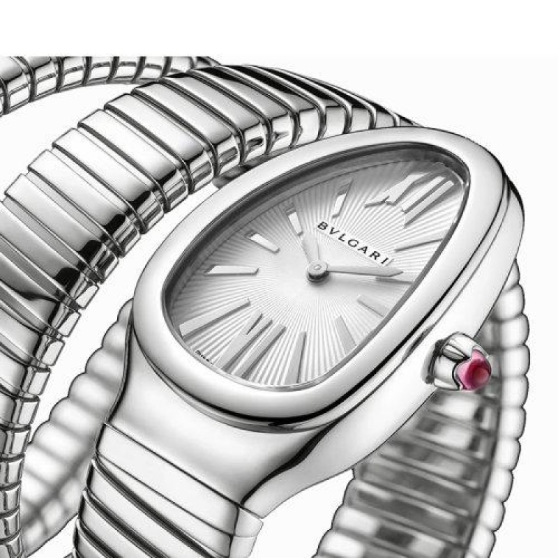 【 Tax included 】 Reserve 2-3 weeks BVLGARI/Bulgari stainless steel double helix case and bracelet with silver milky white dial SERPENTI TUBOGAS quartz watch 35mm B101911
