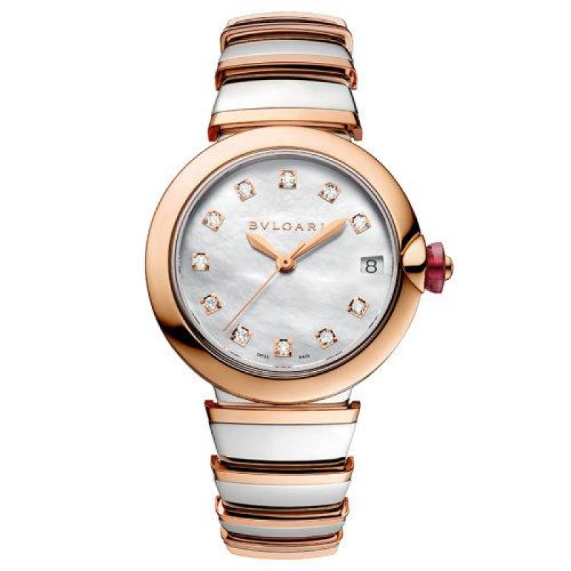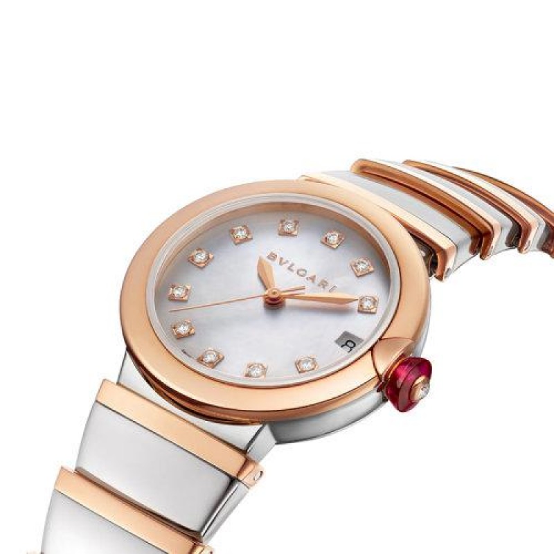 【 Tax included 】 Book 2-3 weeks BVLGARI/Bulgari stainless steel case 18K gold rose gold bezel and bracelet White mother of pearl dial with diamond hour markers LVCEA automatic mechanical watch 33mm 102198
