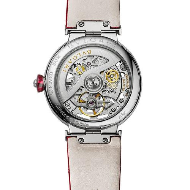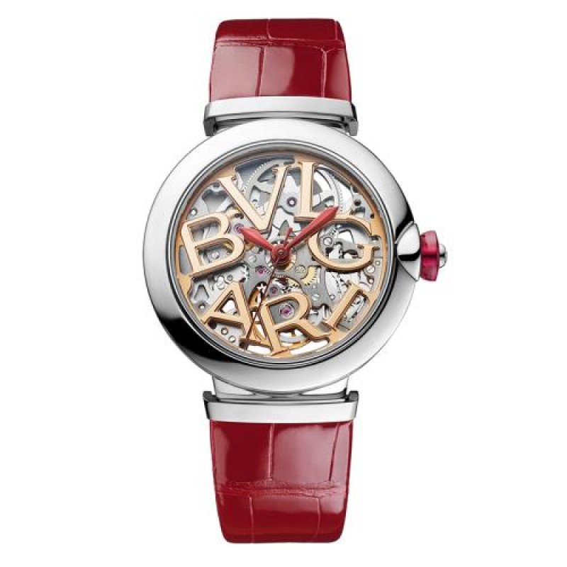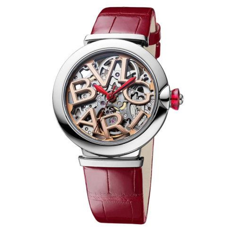 【 Tax included 】 Book 2-3 weeks BVLGARI/Bulgari stainless steel case with hollowed out dial adorned with BVLGARI logo and red crocodile leather strap LVCEA hollowed out strap mechanical movement watch 33mm 102879