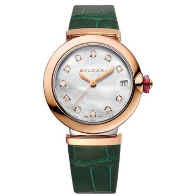 【 Tax included 】 Book 2-3 weeks BVLGARI/Bulgari 18K gold rose gold and stainless steel case with white mother of pearl dial set with diamond hour markers, date window and green crocodile leather strap LVCEA automatic mechanical watch 33mm 102640