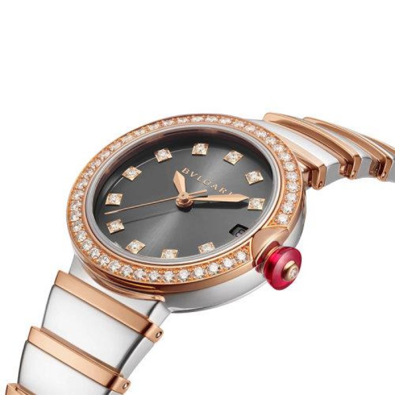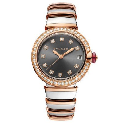 【 Tax included 】 Reserve 2-3 weeks BVLGARI/Bulgari stainless steel case with 18K gold rose gold bezel and stainless steel bracelet, grey painted dial with diamond hour markers LVCEA automatic mechanical watch 33mm 103029