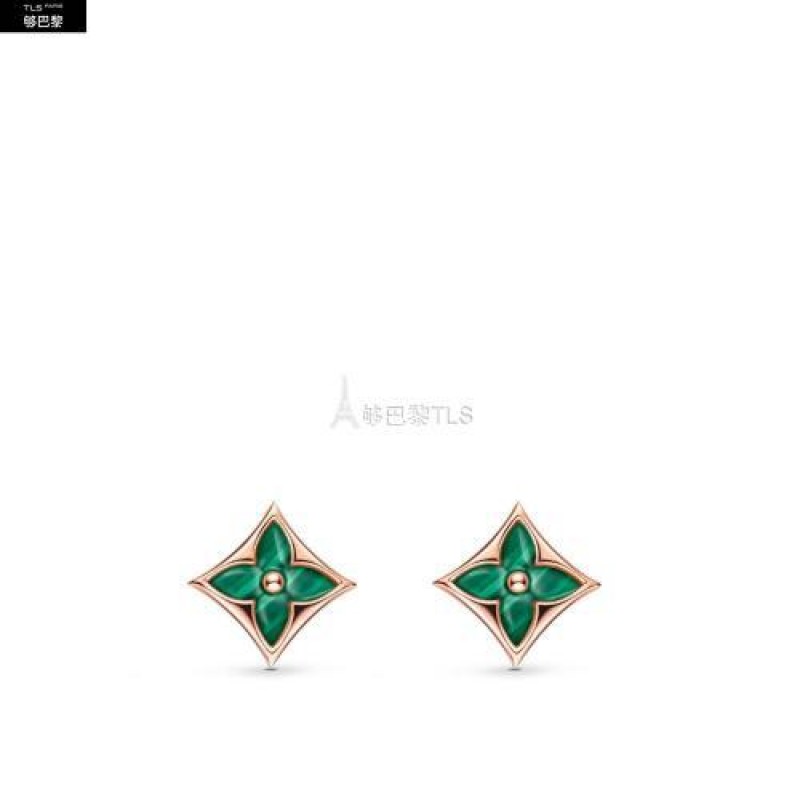 • 【包邮包税】 LV路易威登 21年春夏 女士 耳环 COLOR BLOSSOM BB 1*w*8K金孔雀石耳钉 Q96672 预定商品1-3周发货