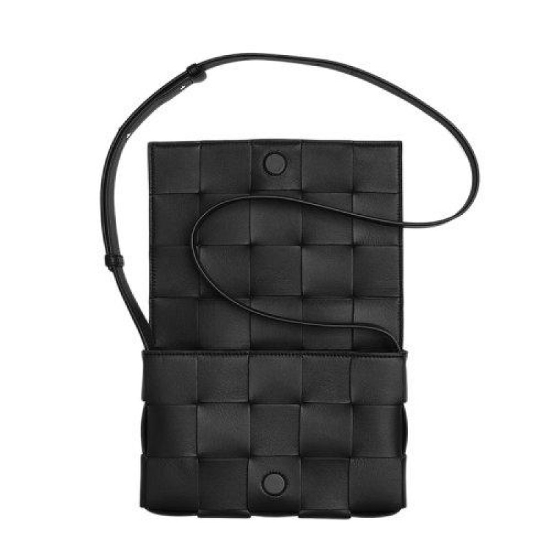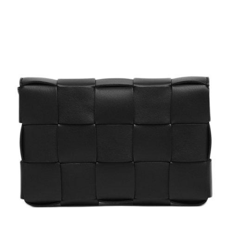 【 Tax included 】 Bottega Veneta/Bottega Veneta Classic CASSETTE Series Black Sheepskin Double sided Orthogonal Weaving Single Shoulder Tofu Bag 578004VMAY11229