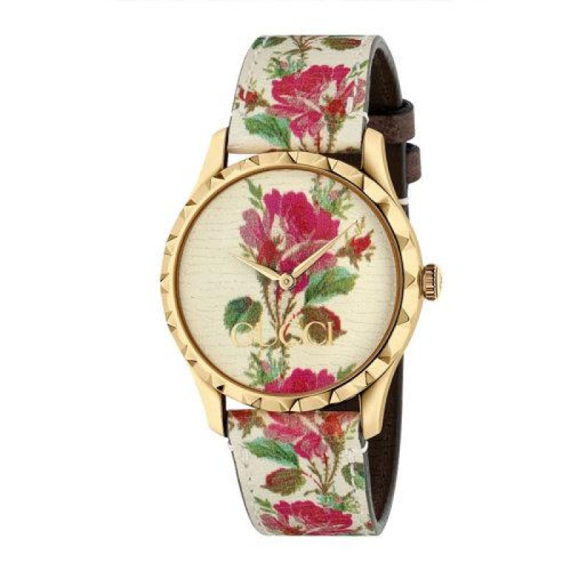 GUCCI/古驰 G-Timeless系列明星同款 女士鲜花表盘皮带石英腕表 YA1264084