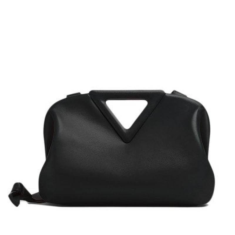 【包税】Bottega Veneta/葆蝶家 21新款POINT系列 女士中号黑色小牛皮三角形手提包652446VCP401229