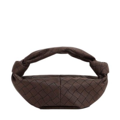 【包税】Bottega Veneta/葆蝶家 21新款DOUBLE KNOT系列 女士巧克力棕色织物牛皮革拉链打结手提包658049V0T412145