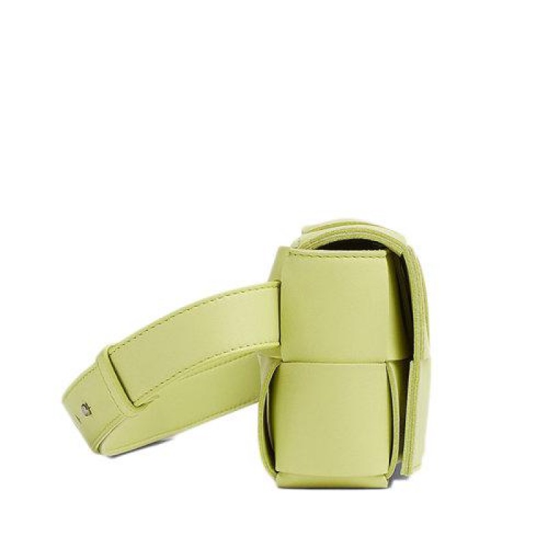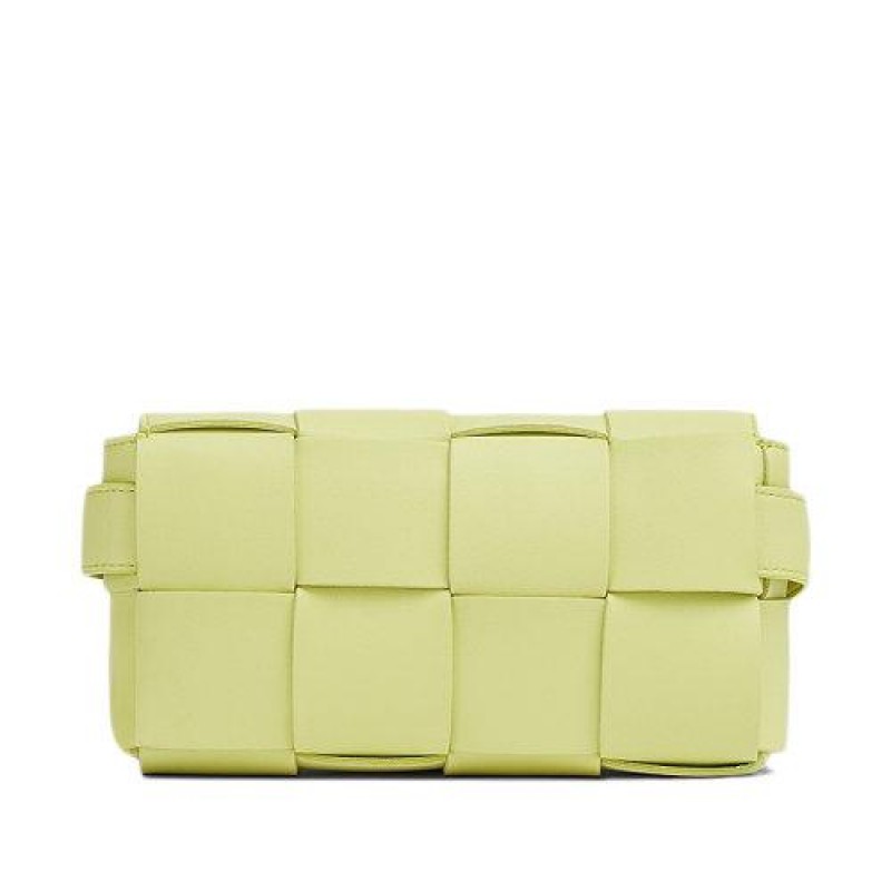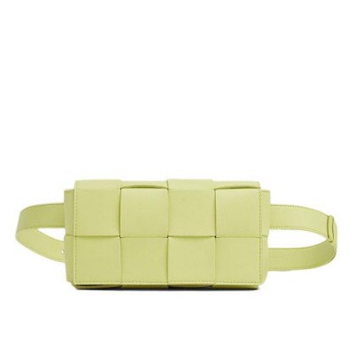 【包税】Bottega Veneta/葆蝶家 21新款BELT CASSETTE系列 海草黄色Intrecciato编织小羊皮斜跨腰包668572VMAY13458