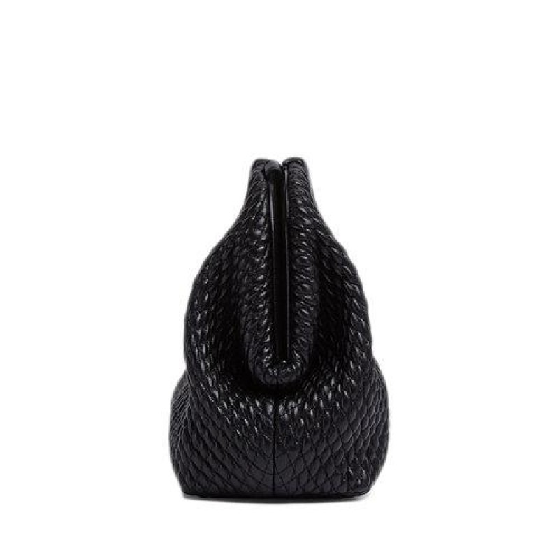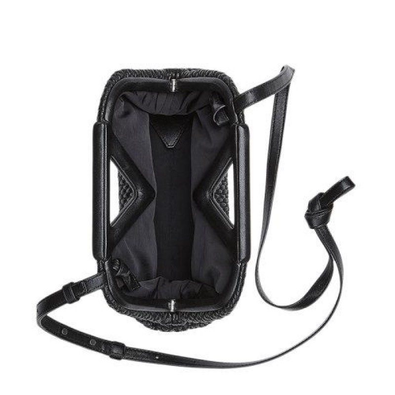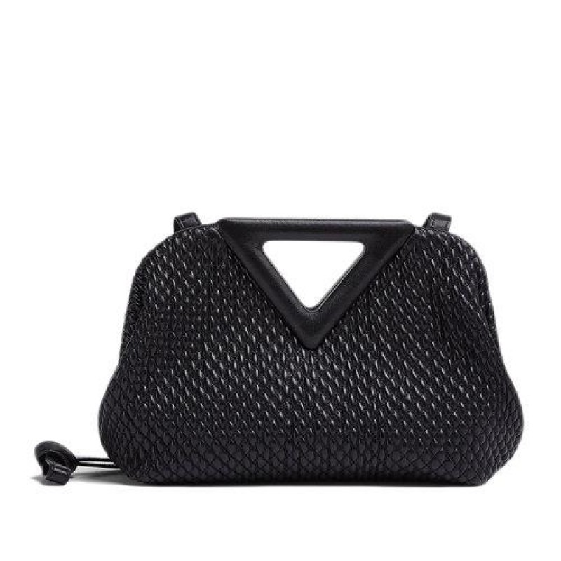 【包税】Bottega Veneta/葆蝶家 21新款POINT系列 女士小号黑色棱纹小羊皮磁性边框三角形提手单肩斜挎手提包661986V0TB18803