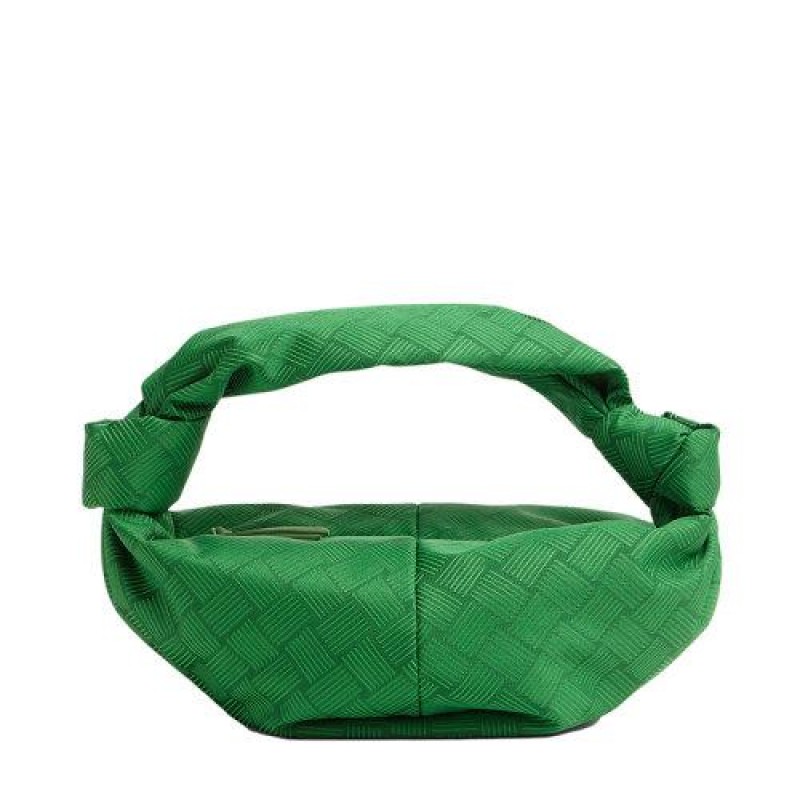 【包税】Bottega Veneta/葆蝶家 21新款DOUBLE KNOT系列 女士鹦鹉绿色织物牛皮革拉链打结手提包658049V0T413711