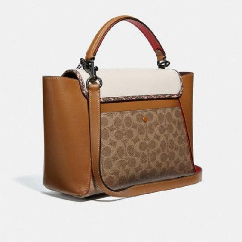 COACH/蔻驰 女士翻盖搭扣手拎包 698 V5OWZ 棕色拼色