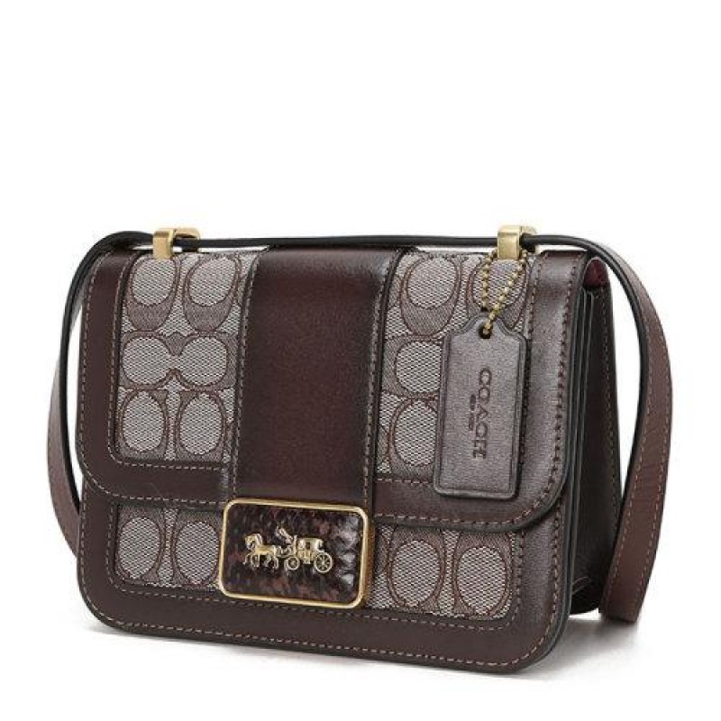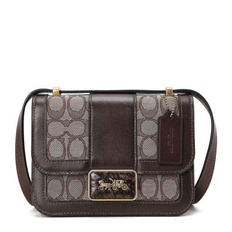 COACH/Coach Alie Lid Bag Square Buckle Horse Logo Old Flower Splicing Leather 4616 Fabric/Matching Leather Pre sale
