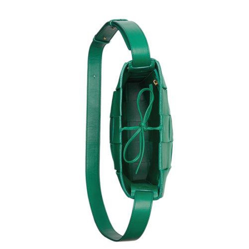 【 Tax included 】 Bottega Veneta/Bottega Veneta 2021 Spring/Summer New Collection CASSETTE Series Green Sheepskin Grid Weaving Postman Shoulder Bag 649601VMAY13186