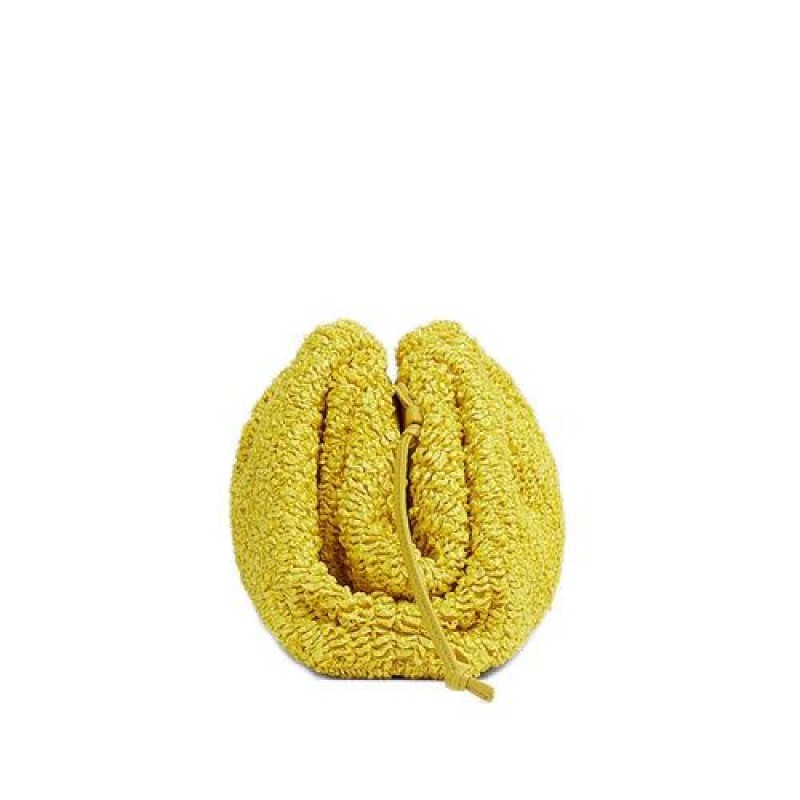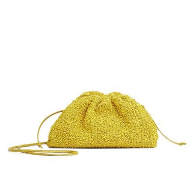 【包税】Bottega Veneta/葆蝶家 21春夏新款POUCH系列 女士迷你黄香李色小牛皮圈绒手拿斜挎云朵包585852V0SR12671