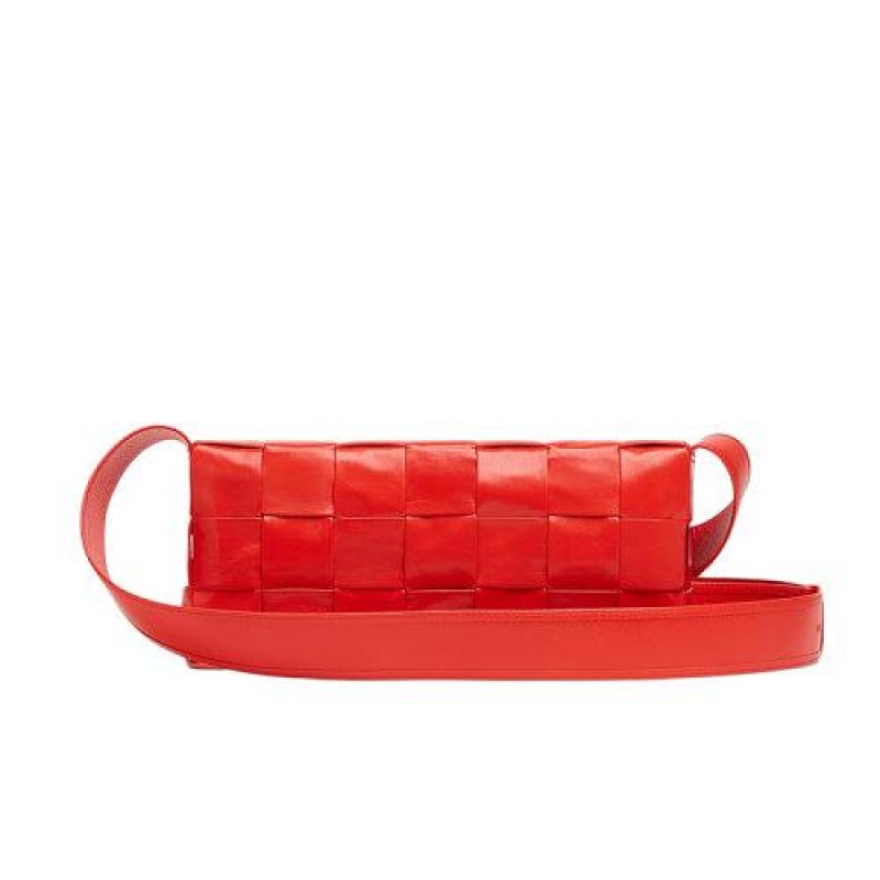 【包税】Bottega Veneta/葆蝶家 经典STRETCH CASSETTE系列 男士番茄色小牛皮编织方形翻盖斜挎包629068VCQ716541