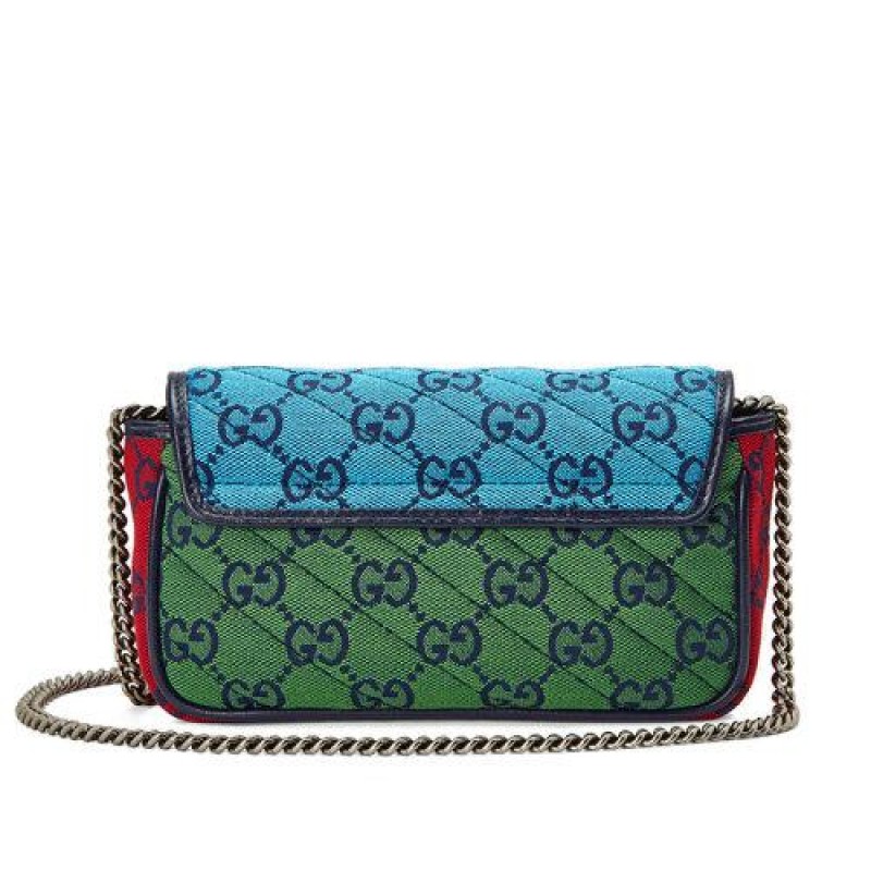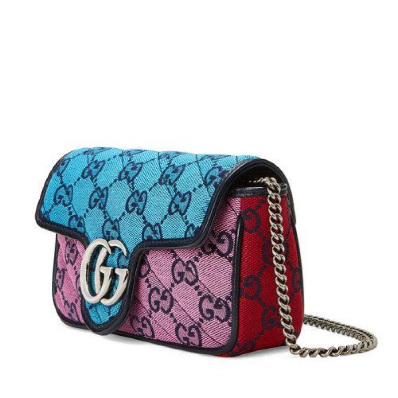 【包税】GUCCI/古驰 2021春夏新款 GG Marmont系列 GG Multicolor super mini女士多色GG帆布银色饰面双G扣斜挎单肩手提包4764332UZDN4165