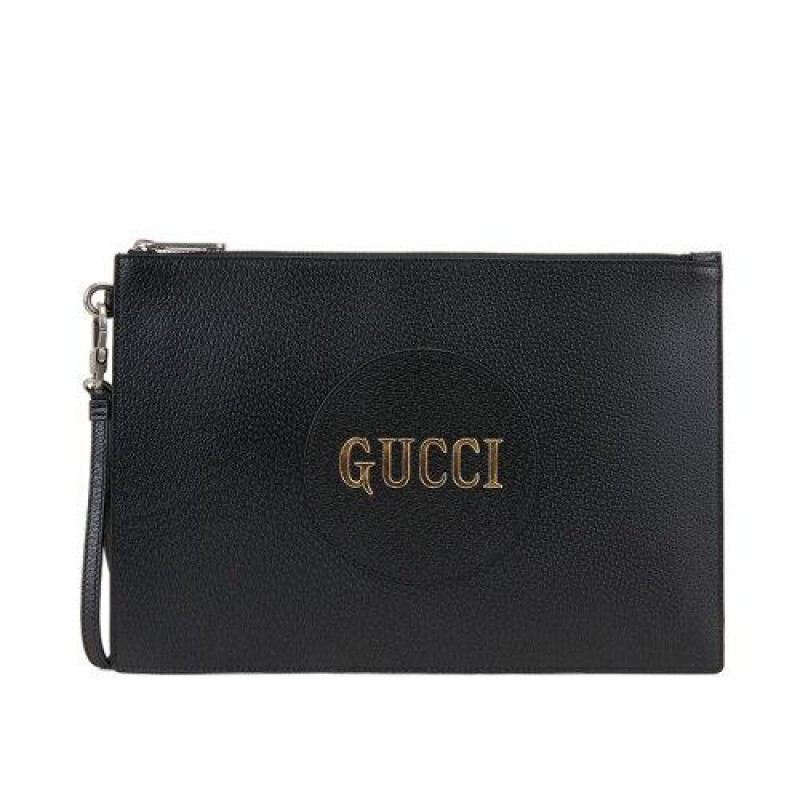 GUCCI/古驰 黑色牛皮GUCCI压花图案手拿包 644115-DJ20N