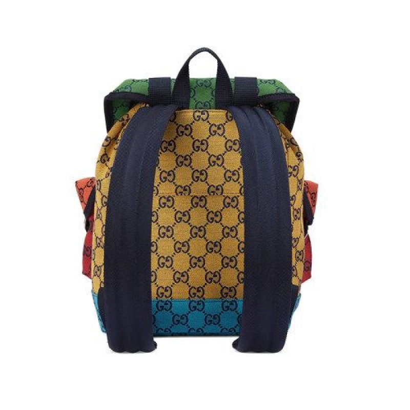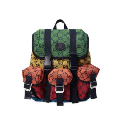【包税】GUCCI/古驰  2021春夏新款 GG Multicolor系列 男女同款彩色GG帆布Gucci铭文抽绳翻盖双肩包6587832UZBN3280