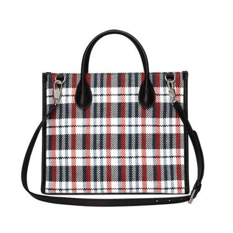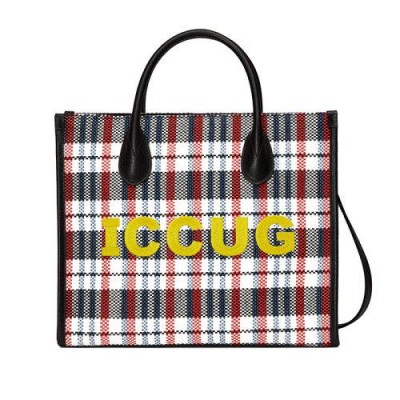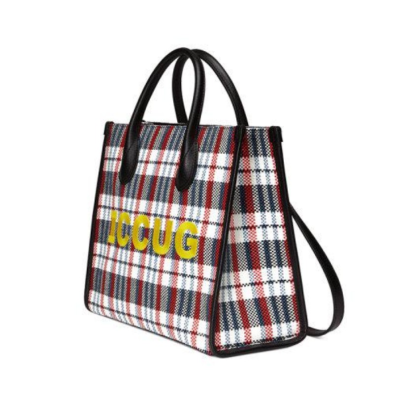 【包税】GUCCI/古驰 2021春夏新款 Cabas系列 女士蓝色/白色/红色格纹rafia尼龙ICCUG刺绣手提斜挎单肩包6599832S6AN1098