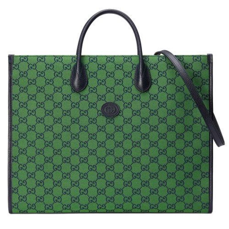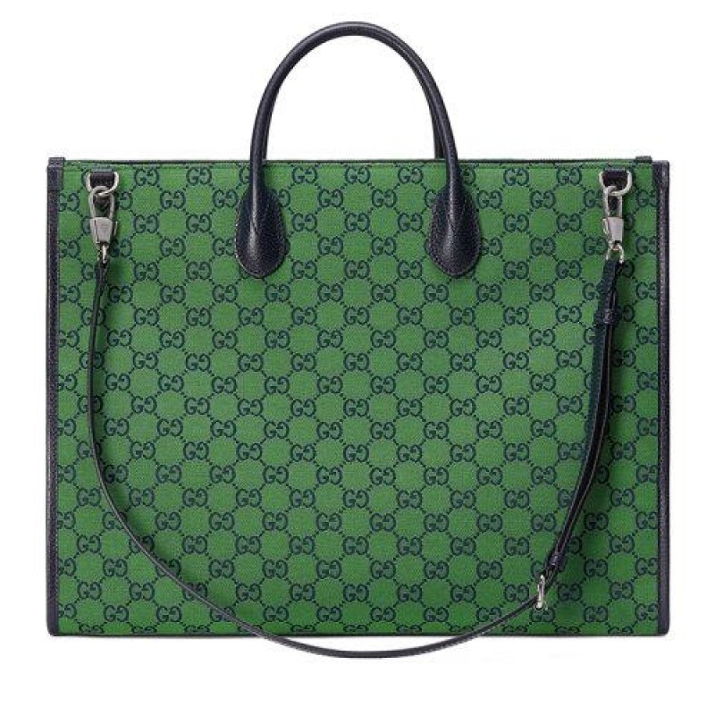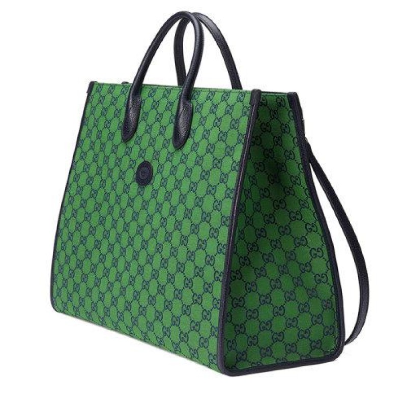 【包税】GUCCI/古驰 2021春夏新款 Cabas GG Multicolor系列 大号男女同款绿色和蓝色GG帆布GG钻石图案手提斜挎单肩包6599802UZAN3368