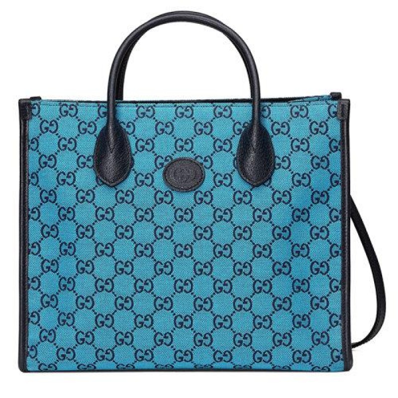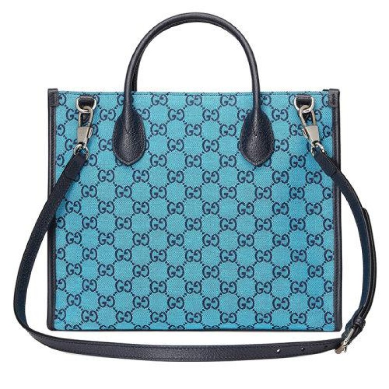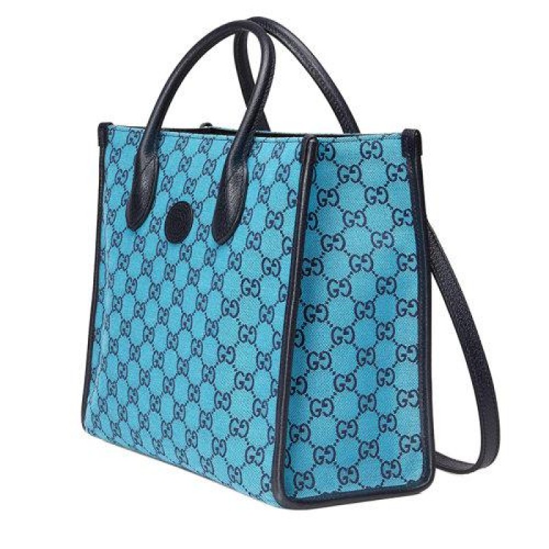 【 Tax included 】 GUCCI/Gucci 2021 Spring/Summer New Cabas GG Multicolor Series Small Unisex Light Blue and Blue GG Canvas GG Diamond Pattern Handheld Cross Shoulder Bag 6599832UZAN4487