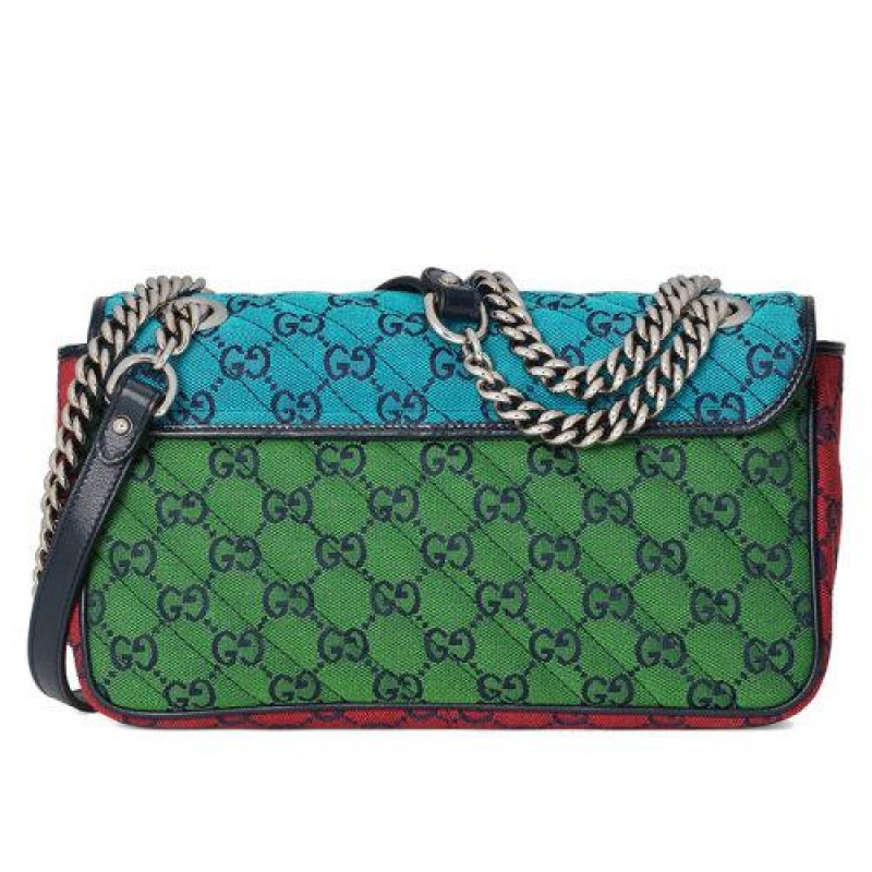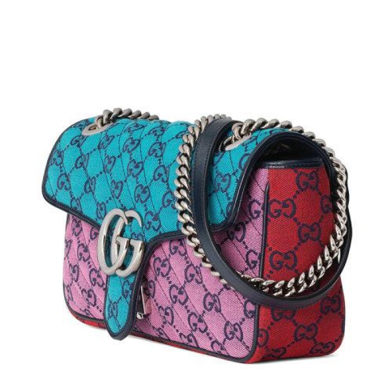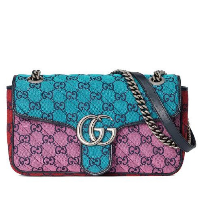 【包税】GUCCI/古驰 2021春夏新款 GG Marmont系列 小号女士彩色GG帆布银色饰面双G扣斜挎单肩手提包4434972UZIN4165