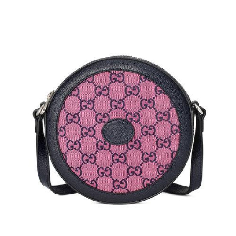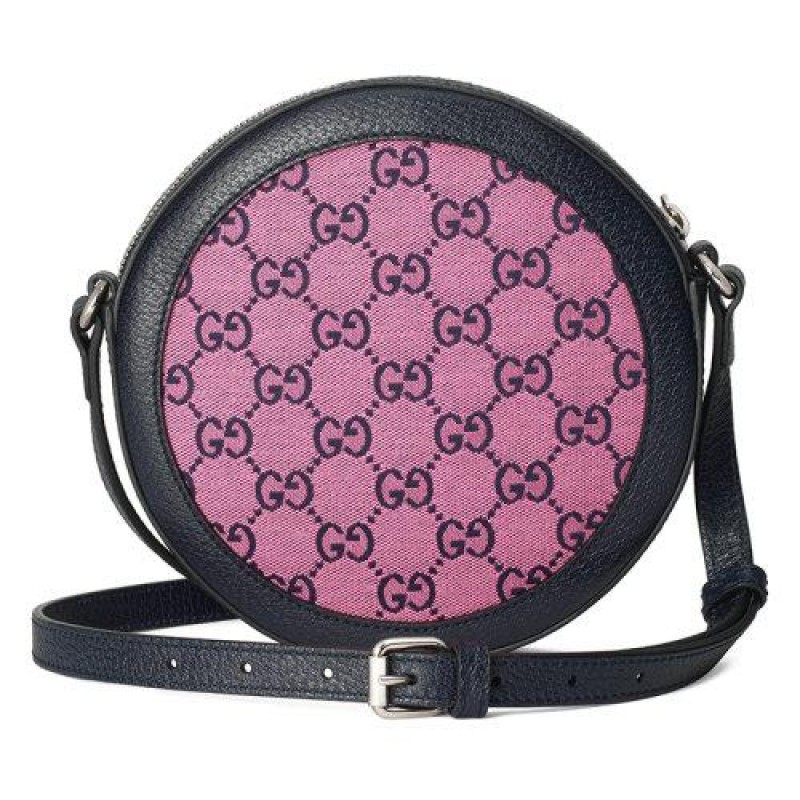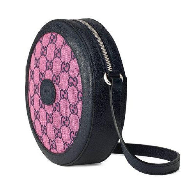 【包税】GUCCI/古驰 2021春夏新款 GG Multicolor系列 女士粉色和蓝色GG帆布可调节肩带圆形单肩包6588252UZAN5279