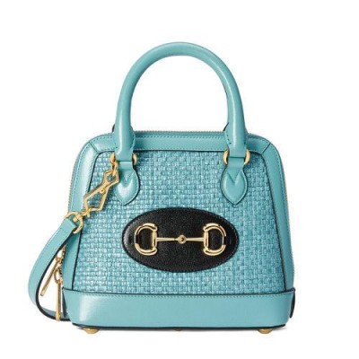 • 【包税】GUCCI/古驰 2021春夏新款 Horsebit 1955系列 女士迷你淡蓝色稻草织物手提斜挎单肩包6407162VAAG4977