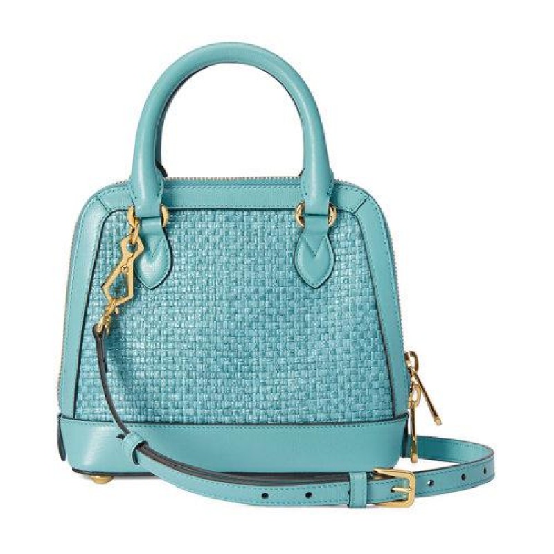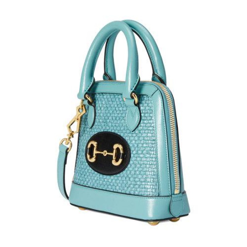 这款迷你手袋采用稻草效果织物制成的柔和淡蓝色调,在稻草效果质感材料中选择了充满活力的阴影,为整个Gucci Horsebit 1955系列带来了现代优雅的新定义。