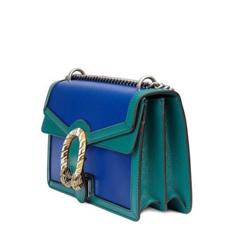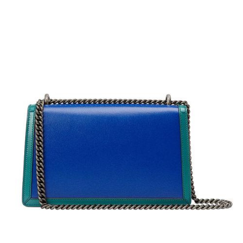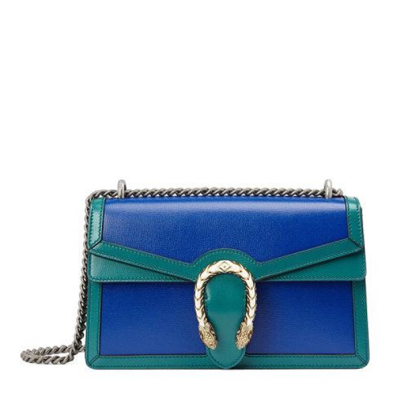 • 【包税】GUCCI/古驰 2021春夏新款 Dionysus系列 女士小号蓝色和绿松石色皮革虎头扣单肩斜挎包‎40024918YQX9278