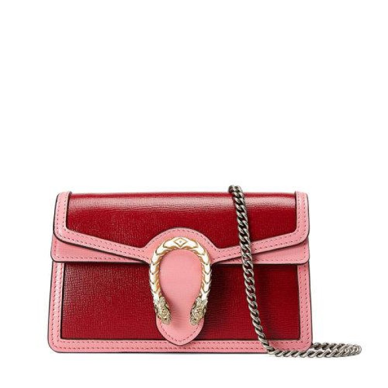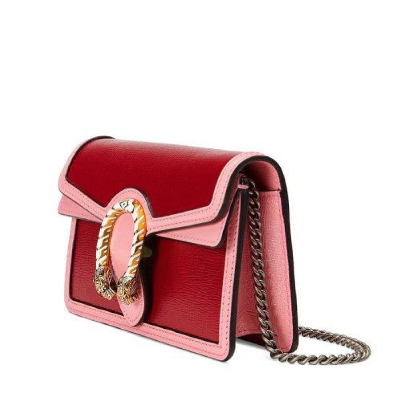 【包税】GUCCI/古驰 2021春夏新款 Dionysus系列 女士超迷你红色和粉色皮革虎头扣单肩斜挎包47643218YQX6664